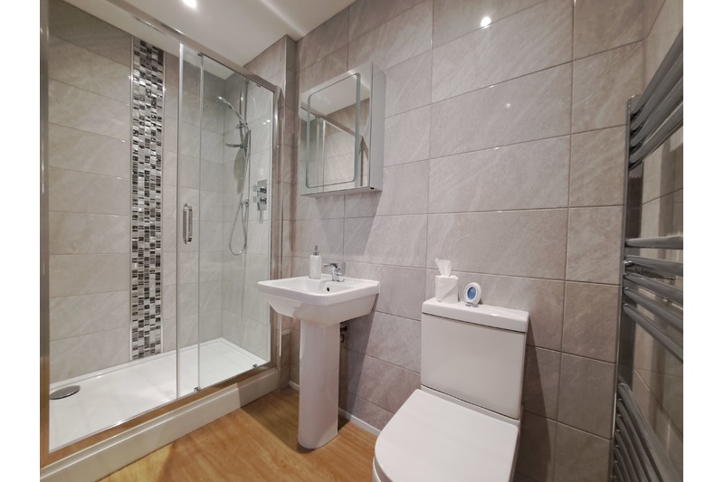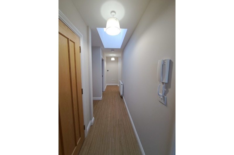 The penthouse features an inviting entrance lobby, two spacious double bedrooms, an ensuite, and a family bathroom with a generously sized double-width bath. The open-plan lounge/dining room is perfect for entertaining, seamlessly connected to a modern bespoke kitchen with a breakfast bar. Enjoy the outdoors with access to both front and rear balconies.
