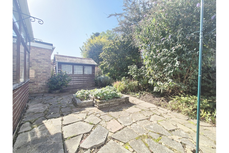 Garden - (35ft x 25ft approx) Crazy paved garden with large bushy shrubs, lots of potential