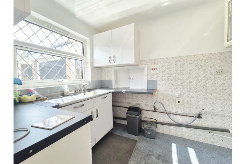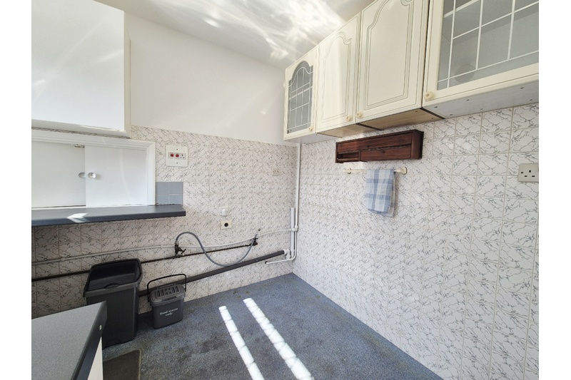 Kitchen - (8.65ft x 7.15ft approx) Small amounts of worktop, tiled and decorated in white