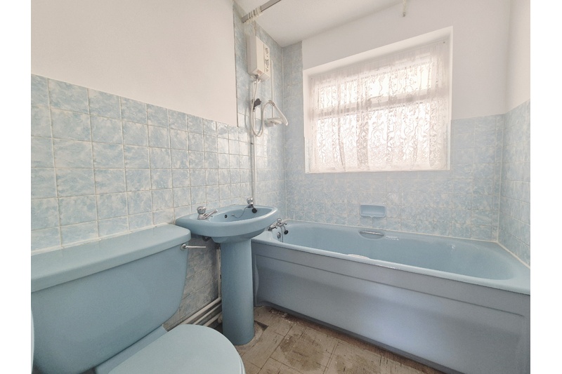 Bathroom - (6.35ft x 5.50ft approx) Blue suite, with tiles and decorated in white