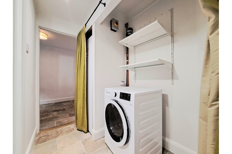 - Hallway/ Utility area (9.81ft x 5.71ft approx): Small utility area, great space for storage use. Has the efficient electric boiler and washing machine.