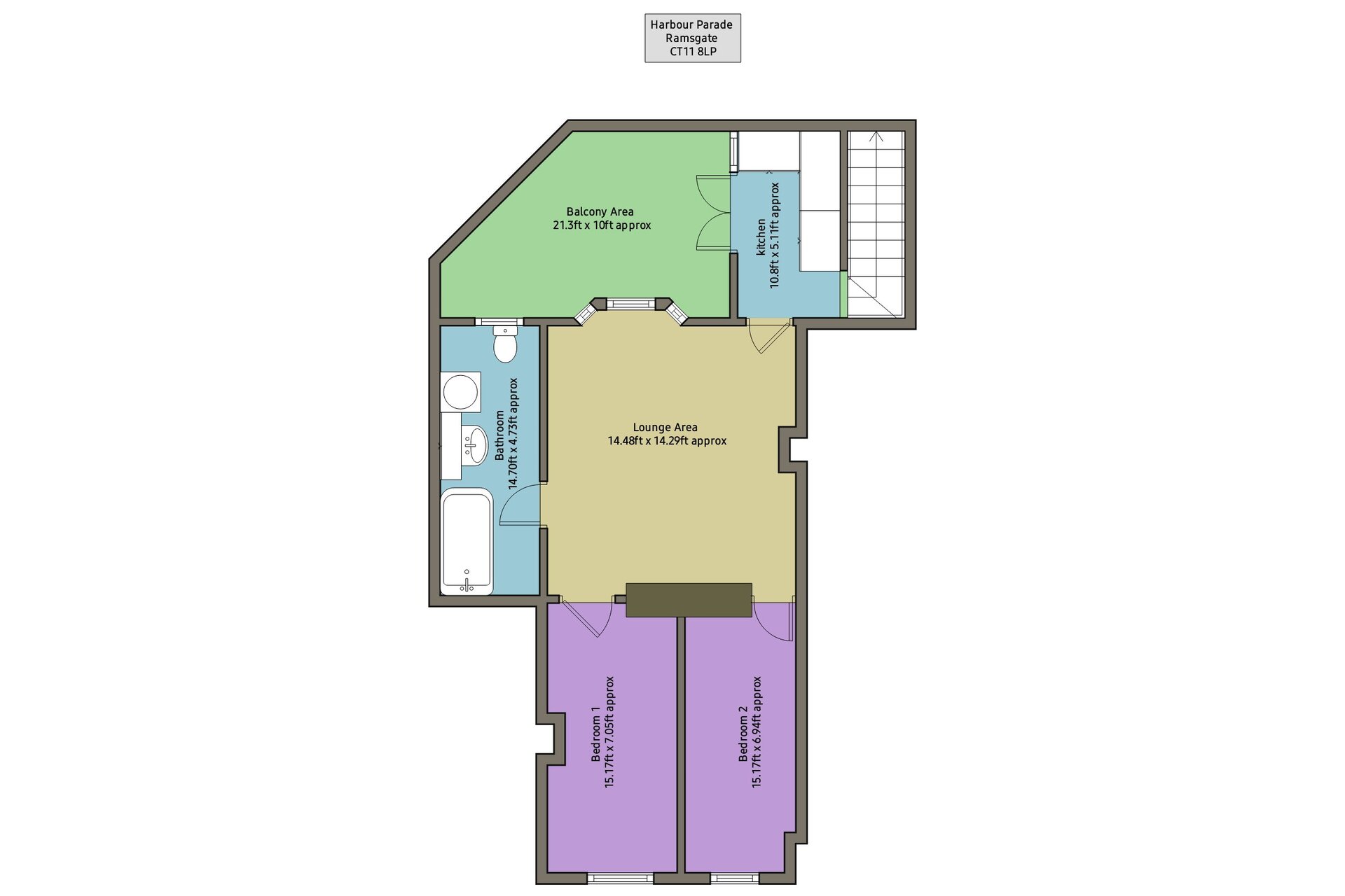 - Balcony: (21.3ft x 10ft approx)