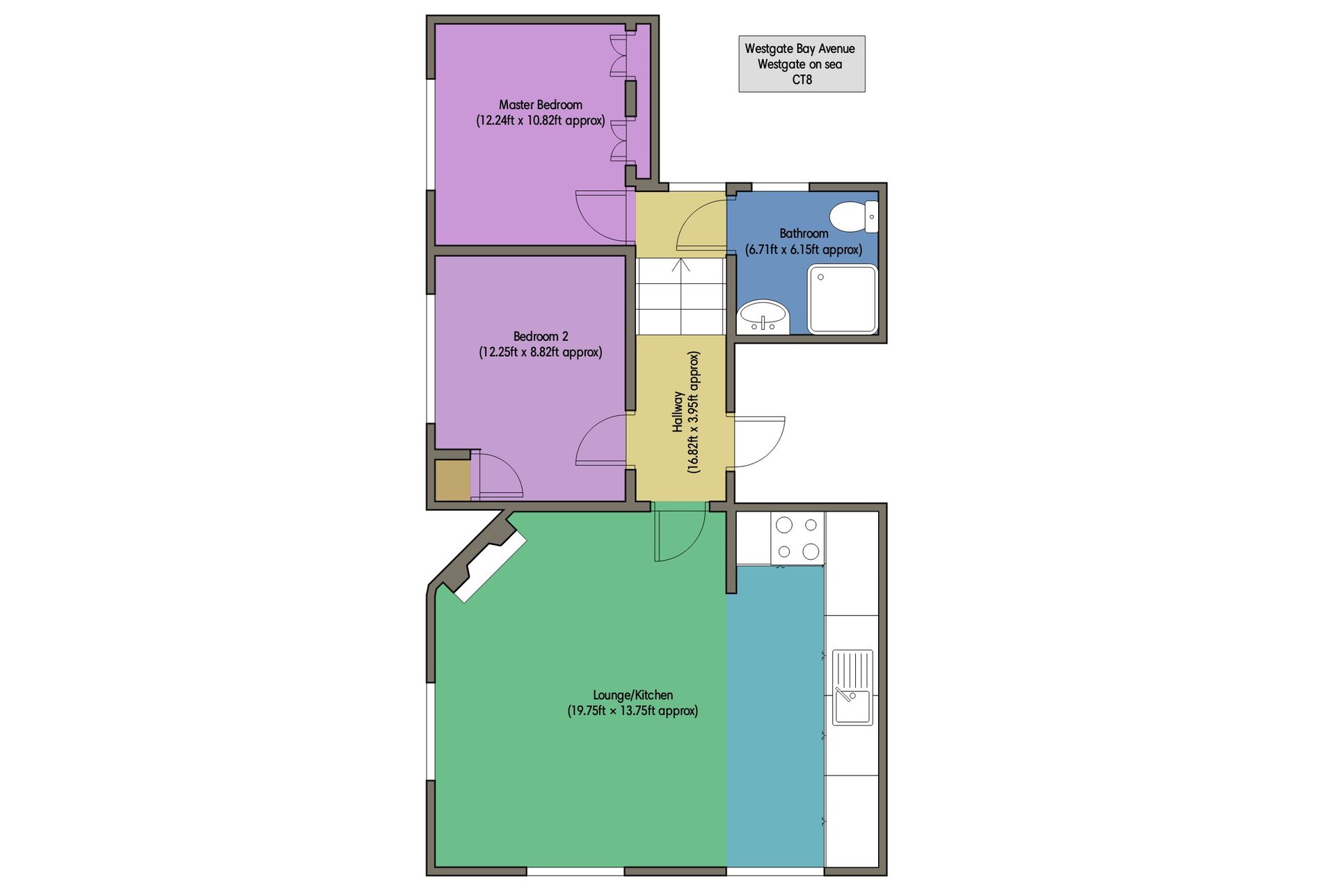 Springer Homes is pleased to present an exceptional share of freehold two-bedroom flat, situated on the first floor of a corner block in the esteemed Westgate-on-Sea. The property is conveniently located in Westgate Bay Avenue, in close proximity to the town centre and local shops. A brief stroll from the shoreline reveals Westgate's stunning sandy beaches. Notably, the property benefits from efficient high-speed rail links to London, ensuring a straightforward and convenient commuting experience.